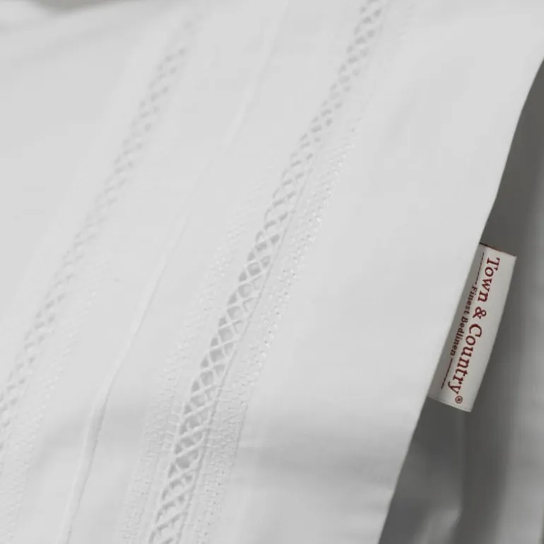 40 cm vanaf de bovenzijde vind je een baan met mooie broderie, de achterkant is glad percal katoen. De slopenhebbendezelfde broderie strook aan de zijkant.