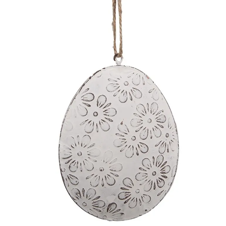 Leuke hanger in de vorm van een ei. Het ei heeft aan 1 kantbloemen. De achterkant van het ei is wit.