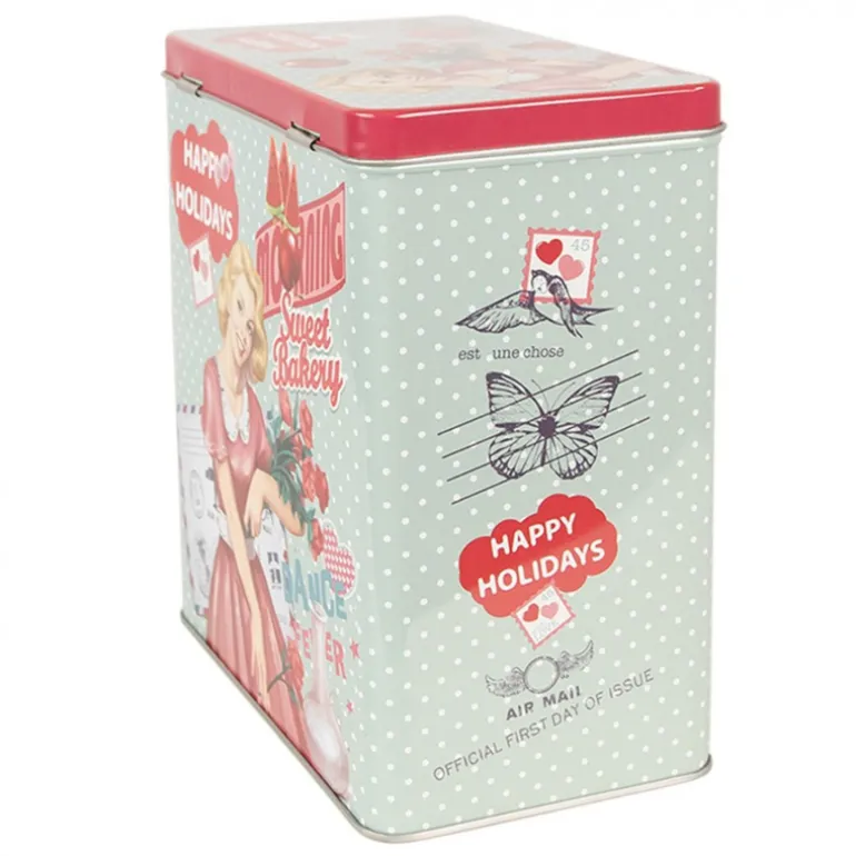 Mooi blik met een nostalgische uitstraling, handig in gebruik maar ook zeker decoratief in de landelijke keuken! Het blik kan ook aan de voorkant met een klep open en zou je er koekjes in kunnen doen en het als koekjestrommel kunnen gebruiken.