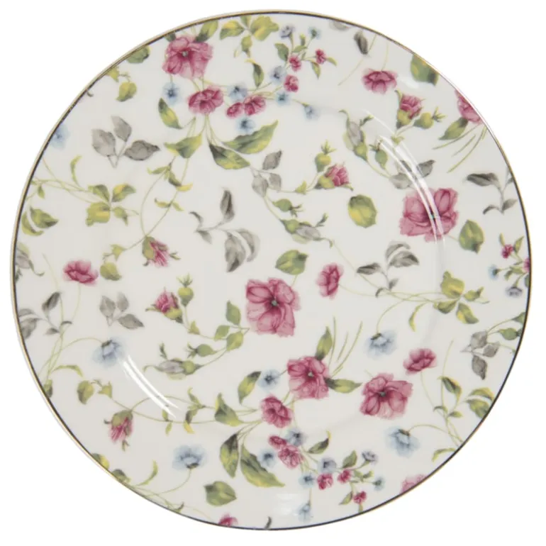 Gezellig ontbijten of een lekker stukje gebak smaakt lekkerder metmooi servies! Dit bord heeft een mooie bloemen print en een goudkleurig randje.