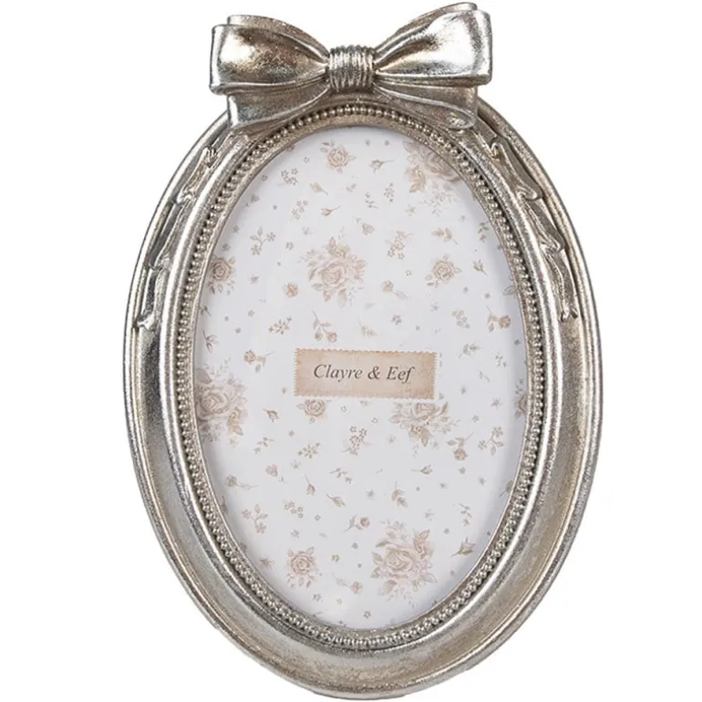 Ovale fotolijst met strik matzilver 10*15