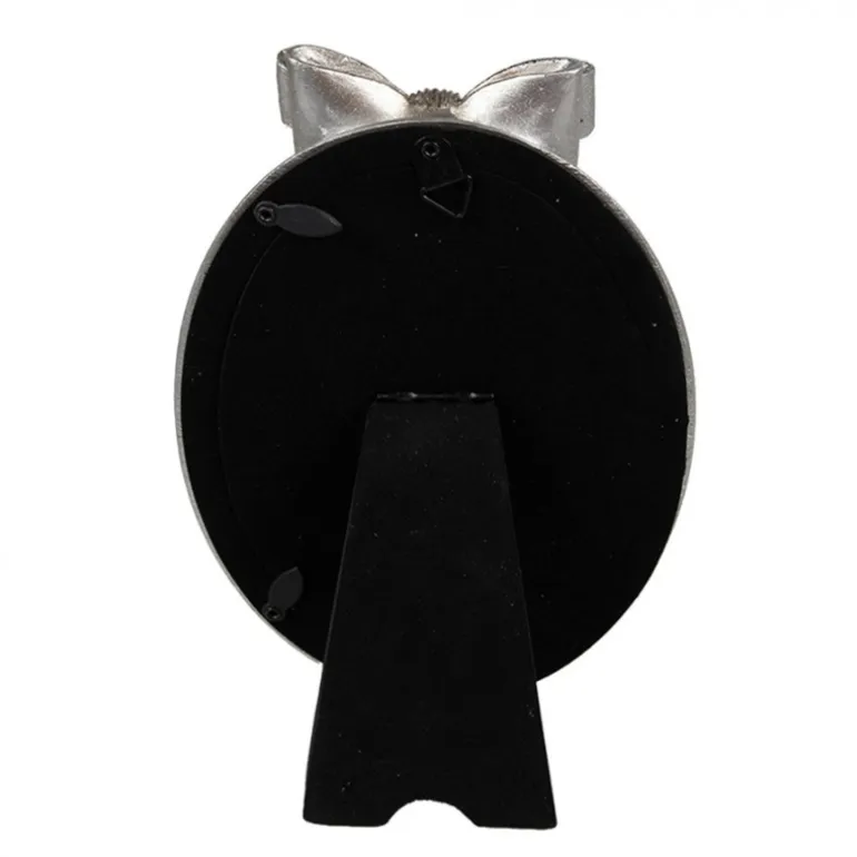 Mooie ovale fotolijst met boven aan de rand een prachtige strik.De kleur is zilver met een matte finish.