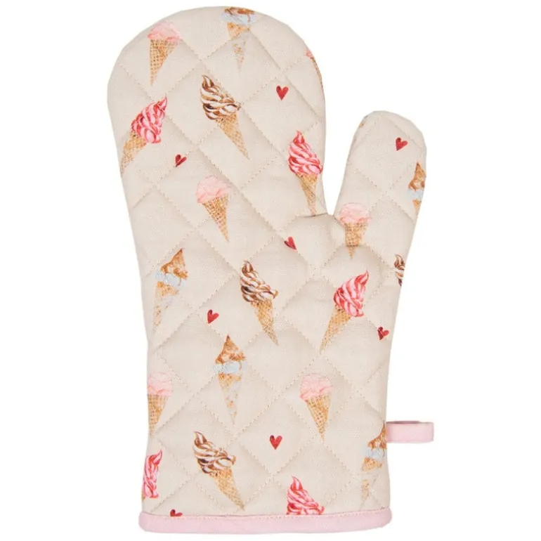 Zoeter dan zoet! Een vrolijke eng schattige textielserie met een patroon van ijsjes en rode hartjes. De perfecte ingrediënten die deze serie zo snoezig maakt. De roze accenten en de beige achtergrond zijn de perfecte basis voor de prachtige illustraties. Maak de tafelmomenten extra feestelijk met deze tafellopers, keukendoeken, ovenhandschoenen, pannenlappen, papieren servettenen broodmandjes. Er is zelfs een kindercollectie beschikbaar van deze serie. Een heerlijk ijs is altijd een goed idee!