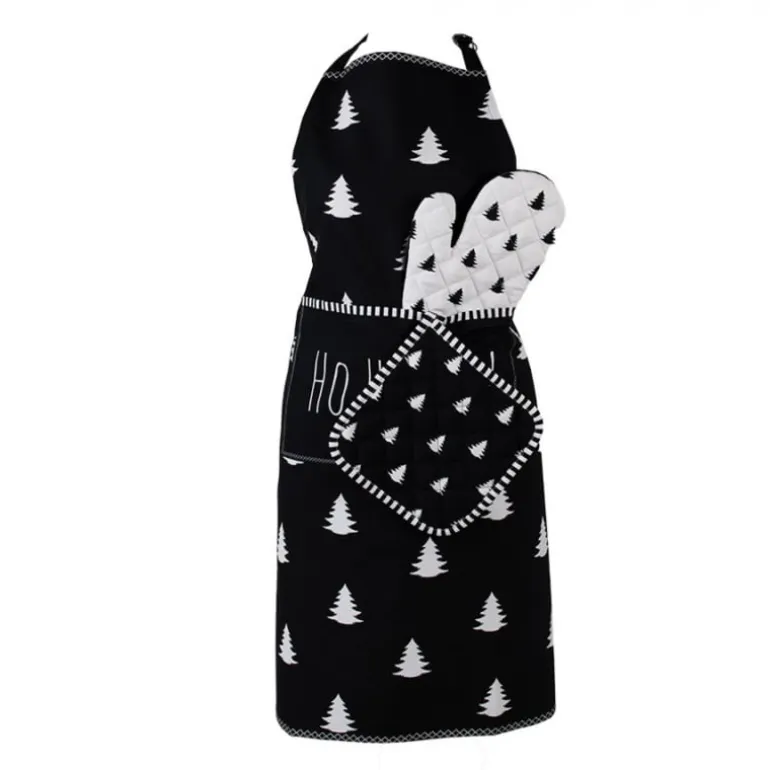 Deze kleine basic serie is voorzien van een zwart wit patroon met kerstbomen op een zwarte of witte achtergrond. Met items als tafellopers, keukenschorten, keukendoeken, pannenlappen en ovenhandschoenen, creëer je op tafel én in de keuken in een handomdraai een rustige en sfeervolle kerstsfeer!