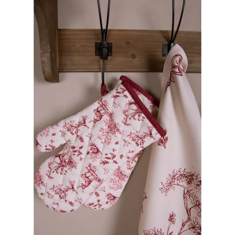 Een textielserie met een nostalgisch tintje die je doet denken aan grootmoederstijd. Het prachtig geïllustreerde bostafereel met herten en eekhoorns vormen een pracht patroon. Eenkleine textielserie met items als keukenschort, pannenlap, ovenhandschoen en keukendoeken die zeker sfeer brengen in de landelijke keuken. Ook met de bijpassende kussenhoes verhoog je de sfeer in de (leef) keuken of zithoek.