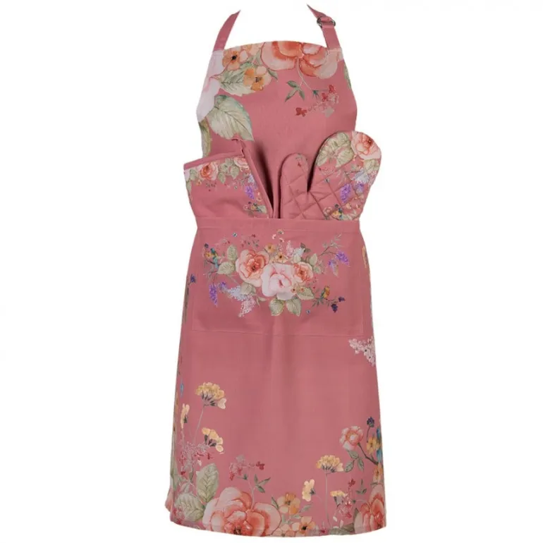 De serie is gemaakt van katoen en op een roze achtergrond bevind zich een fleurige bloemenprint. Een uniek door Clayre & Eef zelf ontworpen design dat perfect te combineren is met ander textiel uit dezelfde serie met o.a een tafelkleed, keukenschort, keukendoeken, ovenhandschoenen, pannenlappen, broodmandje en een tafelloper.