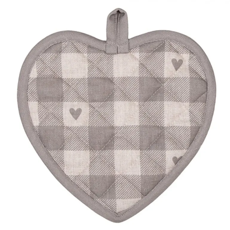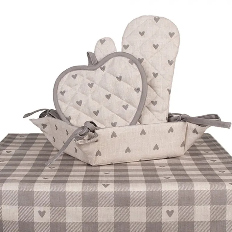 Gemaakt van een katoenen stof met een landelijke ruit gecombineerd met lieflijke hartjes. De serie is verkrijgbaar in de kleuren rood/wit en beige/grijs.