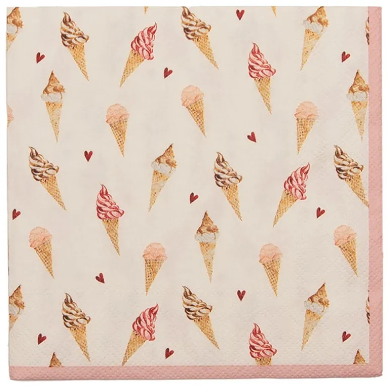Zoeter dan zoet! Een vrolijke eng schattige textielserie met een patroon van ijsjes en rode hartjes. De perfecte ingrediënten die deze serie zo snoezig maakt. De roze accenten en de beige achtergrond zijn de perfecte basis voor de prachtige illustraties. Maak de tafelmomenten extra feestelijk met deze tafellopers, keukendoeken, ovenhandschoenen, pannenlappen, papieren servettenen broodmandjes. Er is zelfs een kindercollectie beschikbaar van deze serie. Een heerlijk ijs is altijd een goed idee!