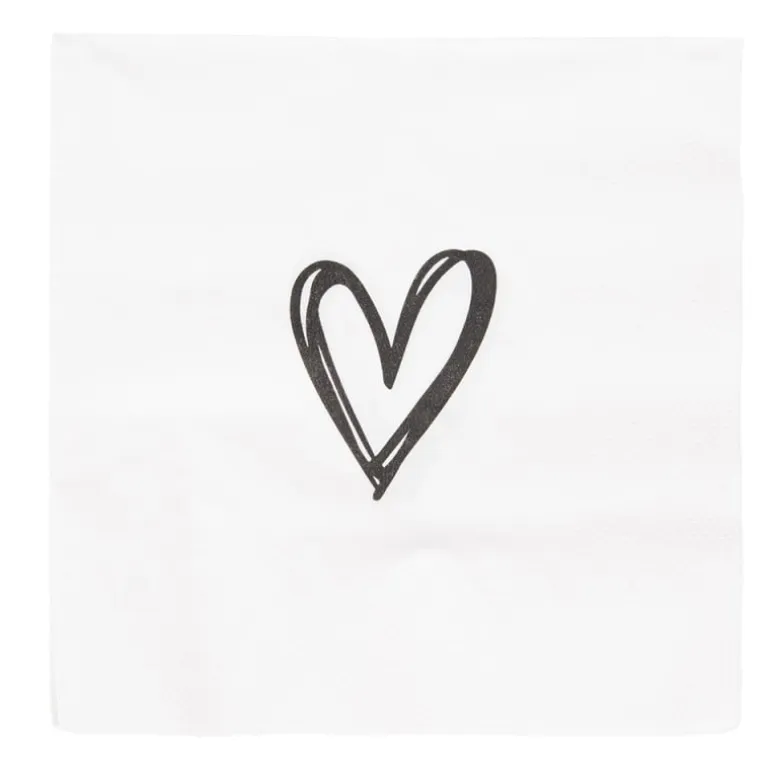 Een pakje met 20 mooie witte servetten met daarop een hartje.