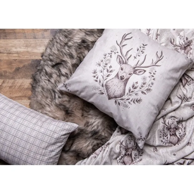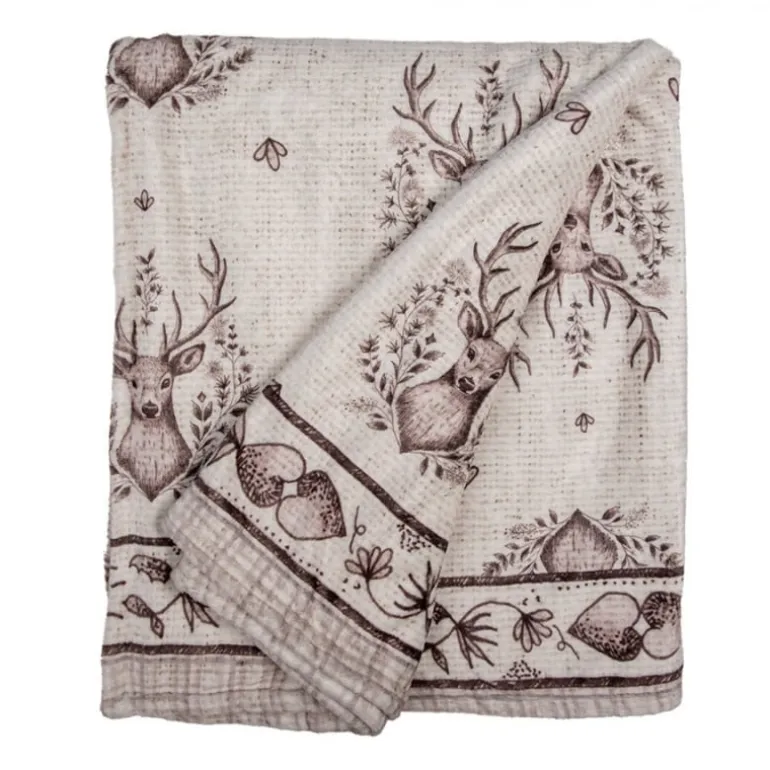 Mooie en gezellige plaid bijpassend bij de textielserie Gentle Wilderness in een beige tint met hert-motieven