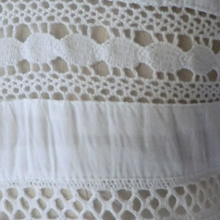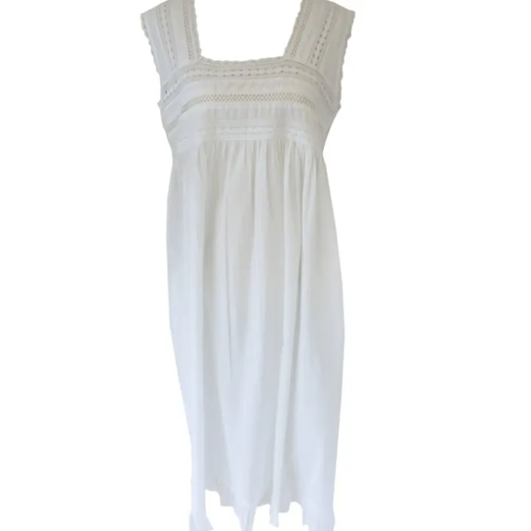 Een romantisch nachthemd, perfect voor warme nachten – de ‘Elisa’ valt over de volledige lengte met een ruches aan de zoom. Dit mouwloze model heeft een vierkante halslijn en het lijfje en de brede bandjes zijn beide versierd met gehaakt katoenkant. Een tijdloze en ontspannen stijl.