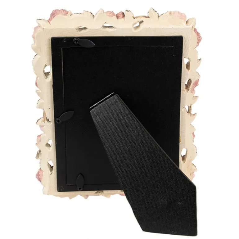 Prachtige fotolijst met een romantische uitstraling! De fotolijst is beige van kleur en de rand is versierd met roze rozen en groene blaadjes. Ook vind je kleine gele roosjes.