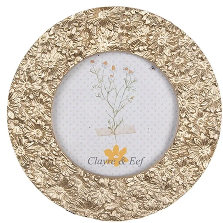 Rond fotolijstje bloemetjes goudkleur 8*8