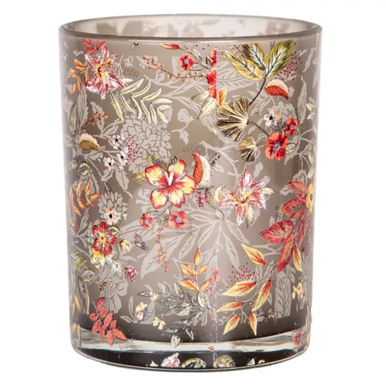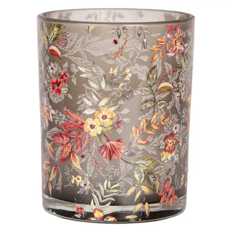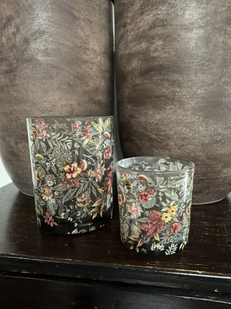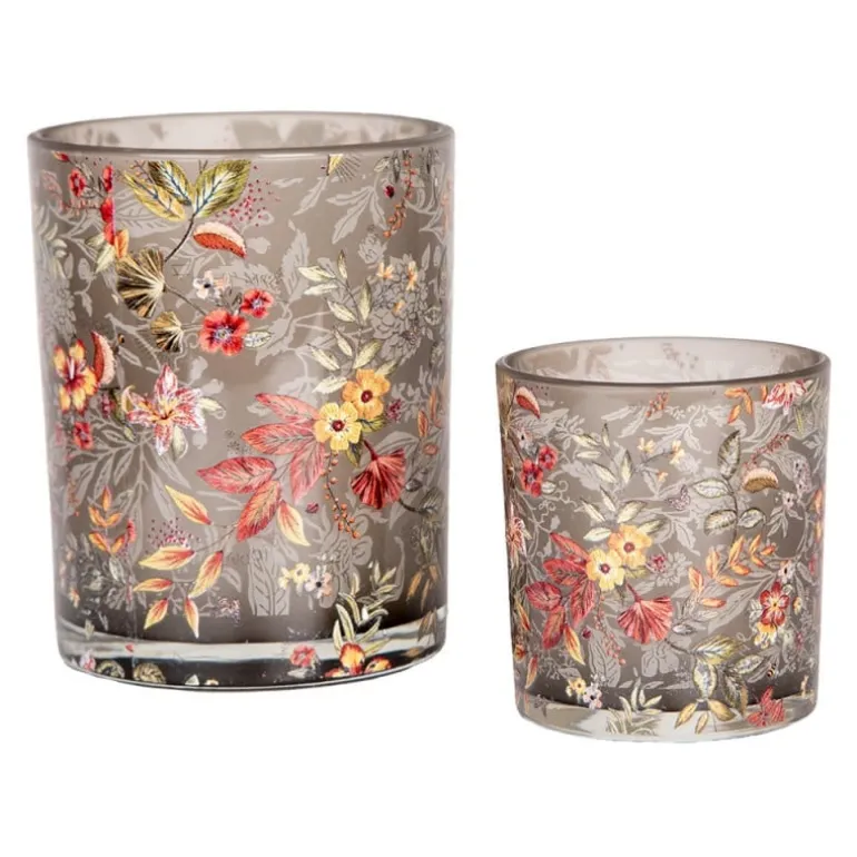 Mooie set van 2 glazen waxinelichthouders met een motief vanfleurige bloemetjes!