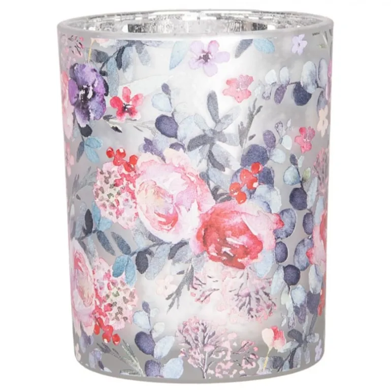 Mooie set van 2 glazen waxinelichthouders met een motief vanfleurige rozen!