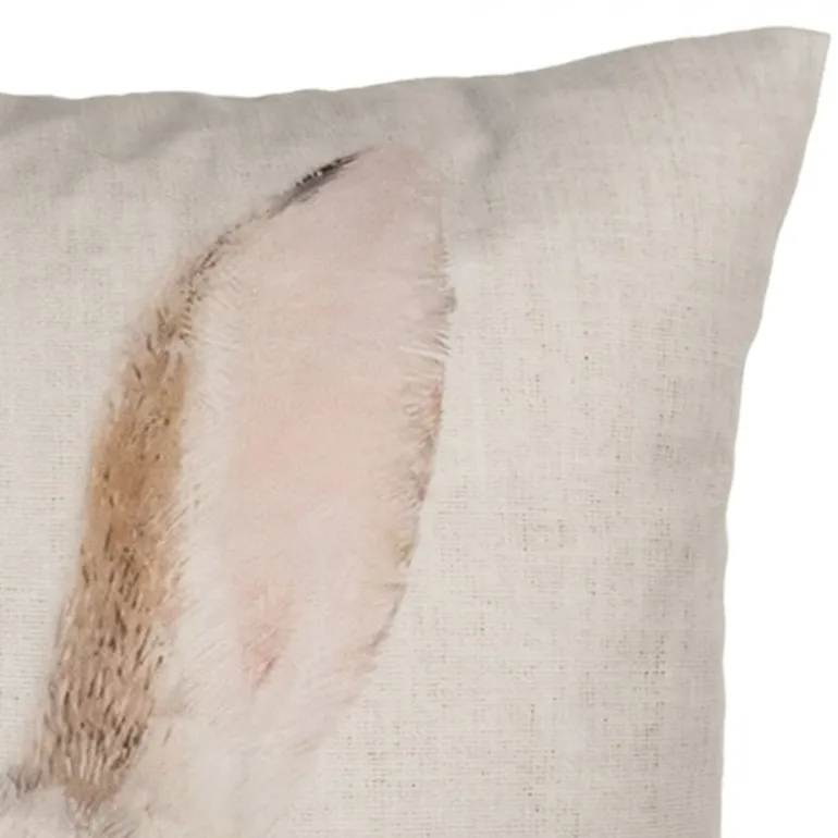 Prachtige sierkussenhoesmet een lieflijk konijn op een linnenlook achtergrond. De kussenhoes is aan beide zijde hetzelfde.