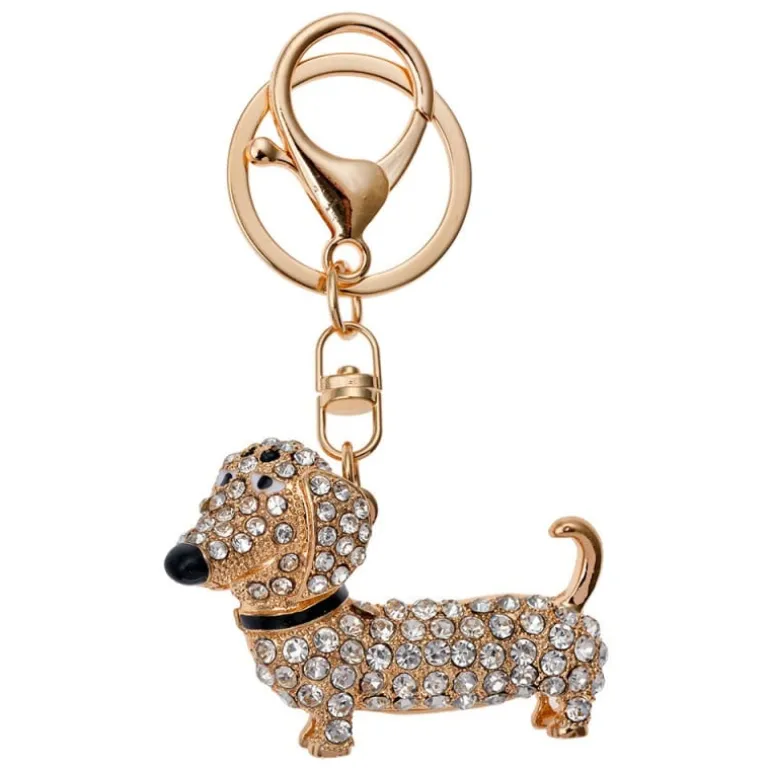 Sleutel / tashanger teckel goud/zilver