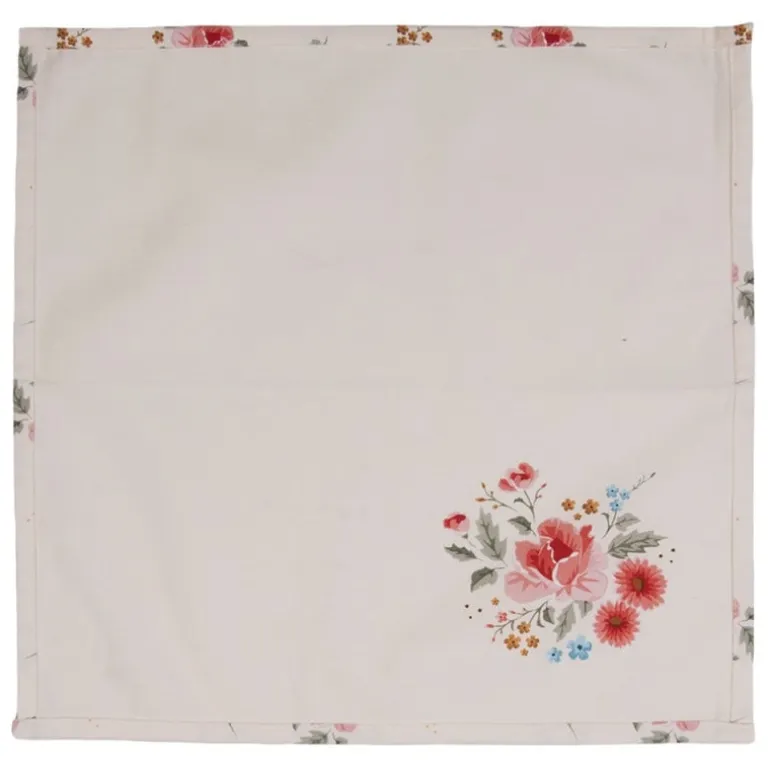 Mooie en gezellige textielserie van Clayre & Eef! De hoofdkleur van deze katoenen stof is cremekleur met daarop een print van bloemetjes en rozen in roze en rood. Sommige artikelen van deze serie hebben een alloverprint andere hebben een grote print van rozen zoals bv op de tafellakens.