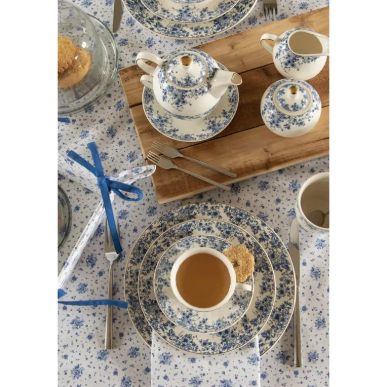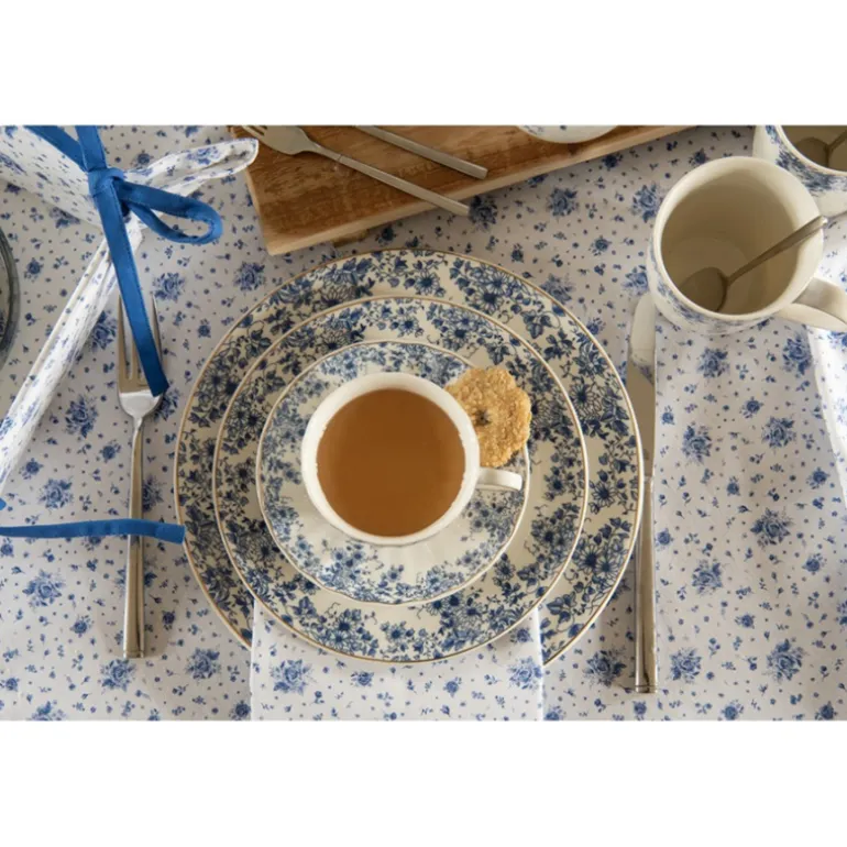Deze kleinere textielserie Blue Rose Blooming van Clayre & Eef staat helemaal in het teken van de blauwe roos. Dezeeenvoudige maar zeer sfeervolle textielserie is voorzien van een prachtig vormgegeven rozenpatroon in een delfsblauwe kleur. Het blauwe accent in de biezen maakt het plaatje compleet. Bovendien zorgt de witte ondergrond voor een frisse look. Het is een zeer complete serie met items als tafelkleden, tafellopers, placemats en servetten. Voor in de keuken zijn er keukendoeken, pannenlappen, een keukenschort en ovenhandschoenen verkrijgbaar. Daarbij is deze textielserie heel goed te combineren met het prachtige servies Blue Rose Blooming
