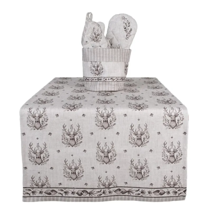 De textielserieGentle Wildernessvan Clayre & Eef in een mooie beige tint brengt een sfeervolle vintage uitstraling naar elke keuken. Versierd met elegante hert-motieven en gedetailleerde planten illustraties, straalt elk item warmte en charme uit. Deze collectie omvat alles wat je nodig hebt om elke keuken instijl te verfraaien. Van prachtige tafelkleden en stijlvolle theedoeken tot praktische schorten en decoratieve placemats. Elk stuk is ontworpen met oog voor detail en kwaliteit, waardoor functionaliteit en esthetiek perfect samengaan. Breng een vleugje nostalgie en natuur in elk interieur met deze unieke en sfeervolle keukencollectie.