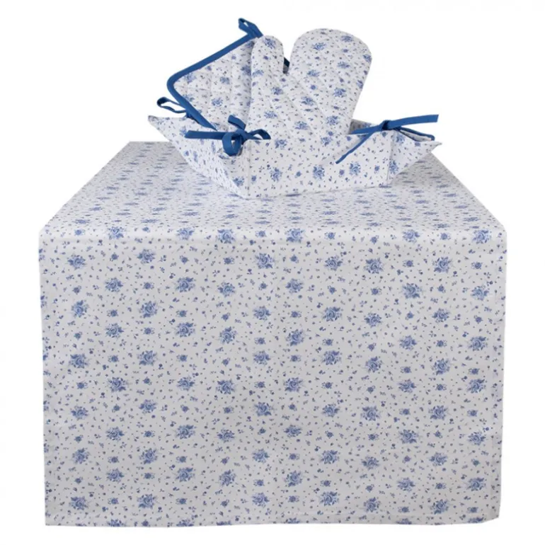 Deze kleinere textielserieBlue Rose Bloomingvan Clayre & Eef staat helemaal in het teken van de blauwe roos. Dezeeenvoudige maar zeer sfeervolle textielserie is voorzien van een prachtig vormgegeven rozenpatroon in een delfsblauwe kleur. Het blauwe accent in de biezen maakt het plaatje compleet. Bovendien zorgt de witte ondergrond voor een frisse look. Het is een zeer complete serie met items als tafelkleden, tafellopers, placemats en servetten. Voor in de keuken zijn er keukendoeken, pannenlappen, een keukenschort en ovenhandschoenen verkrijgbaar. Daarbij is deze textielserie heel goed te combineren met het prachtigeservies Blue Rose Blooming