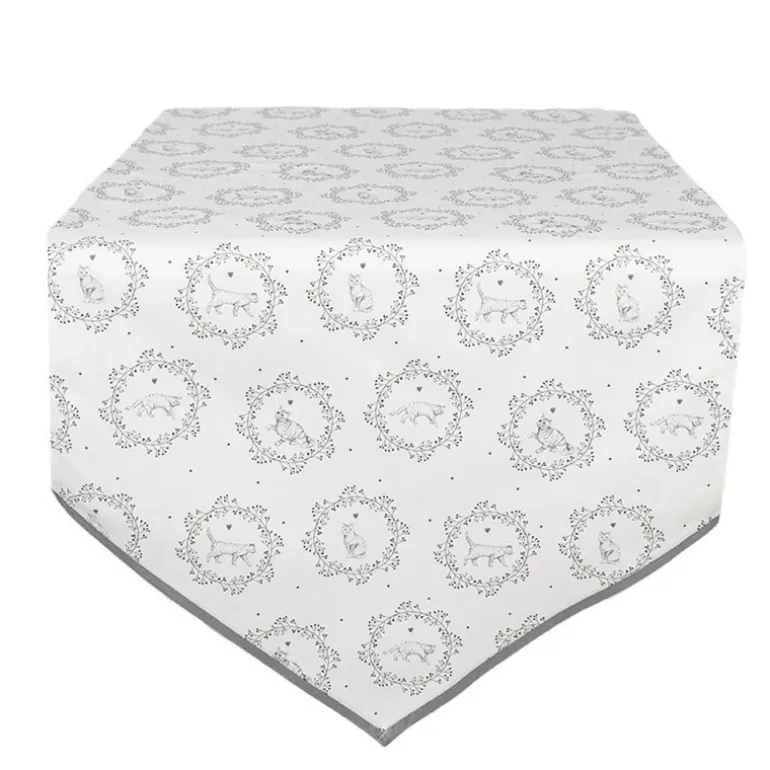 Tafelloper wit/grijs kat 50*160