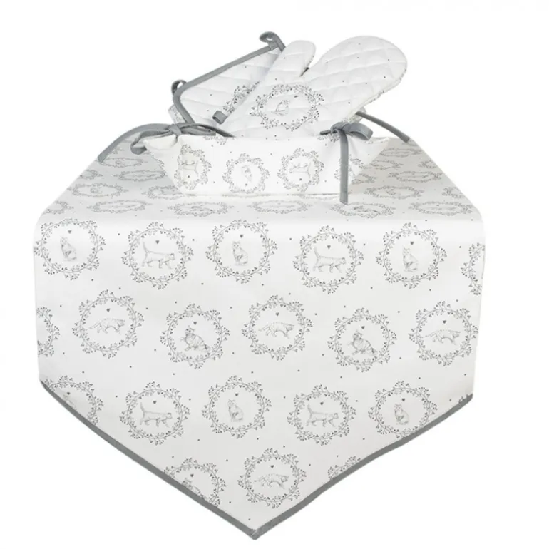 Ontdek deprachtige keukentextielserieLovely Grey Catvan Clayre& Eef. Deze serie metbasic grijze en witte tinten, encharmante kattenmotieven zullende keuken gegarandeerd zullen opvrolijken. Deze kleine serie met o.a. keukendoeken, schorten, tafellopers, ovenhandschoen en pannenlappen zijn met liefde gemaakt, waardoor ze niet alleen de esthetiek van de keuken verbeteren, maar ook de functionaliteit verhogen. Dit elegante kattenthema is ideaal voor zowel kattenliefhebbers als mensen die subtiele, charmante keukendecoratie zoeken. Of er nu een 3 gangen diner wordt bereid of er genoten wordt van een heerlijk kopje thee, dit grijs met witte keukentextiel met kattenthema zal zeker gezelligheid toevoegen aande keuken!