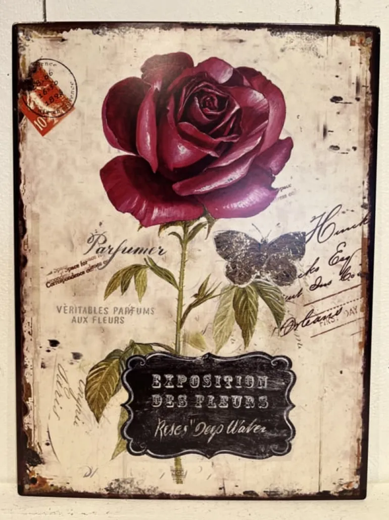 Tekstbord / wandplaat Roos Parfumer 25*33
