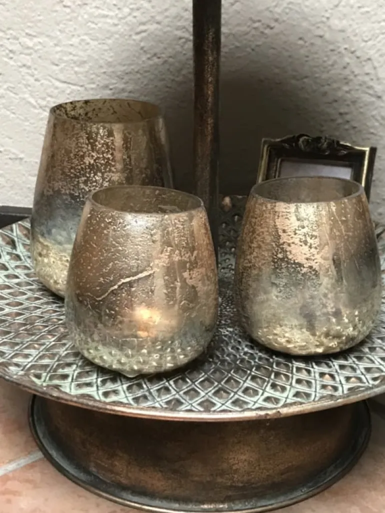 Met deze waxinelichthouder creër je echt gezelligheid! De prachtige kleuren variëren van goudkleur, grijs, groenig.