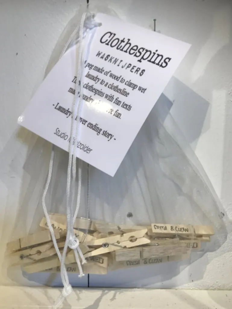 Maak het wassen en het ophangen van de was wat leuker met deze houten wasknijpers die zijn voorzien van leuke teksten!
