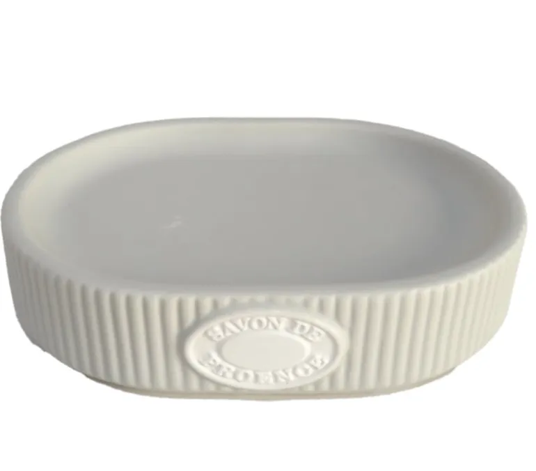 Leg een lekker ruikend stuk zeep in dit stijlvolle zeepbakje. Het ovalezeepbakje met de tekst: Savon de Proencgeeft een luxe landelijke sfeer aan je badkamer of toilet.