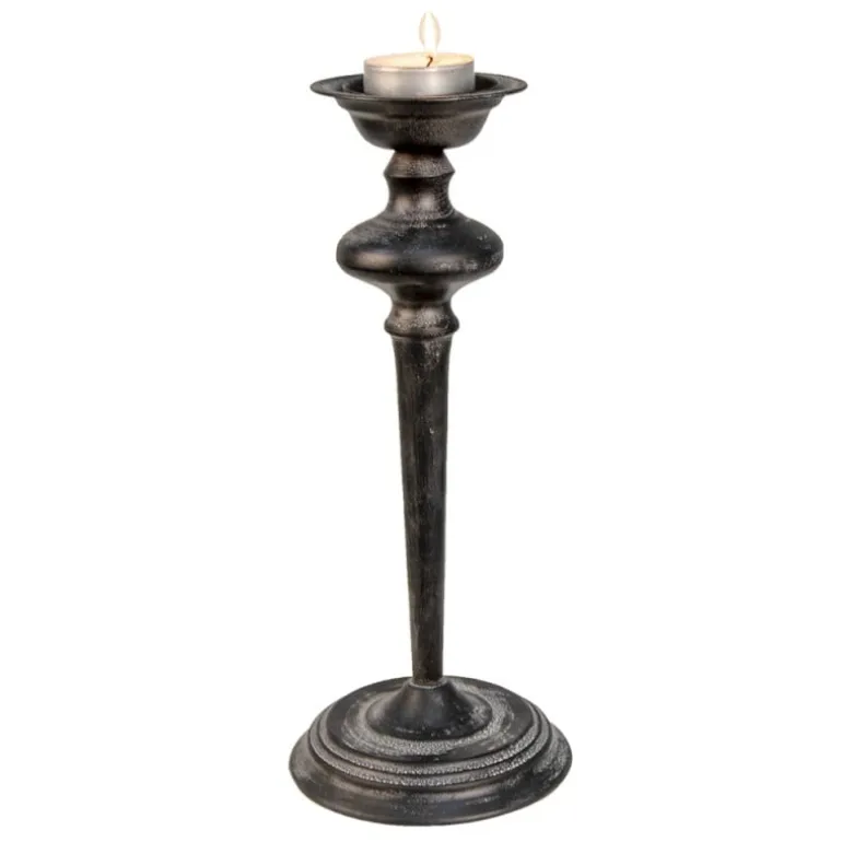 Zwart ijzeren kandelaar landelijk 16*38