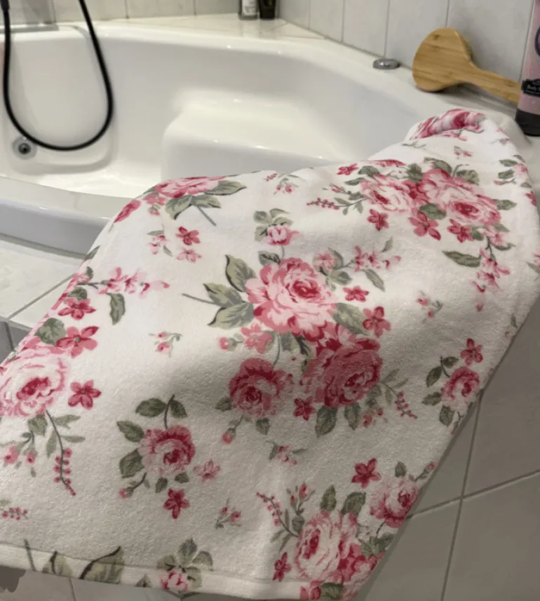 Het mooie rozen patroon met roze en groentinten geeft een charmante en vrouwelijke uitstraling waardoor het een mooie toevoeging is aan elke badkamer!