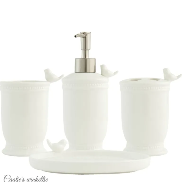 Mooie 4-delige set met een vogeltjevoor op de badkamer bestaande uit: