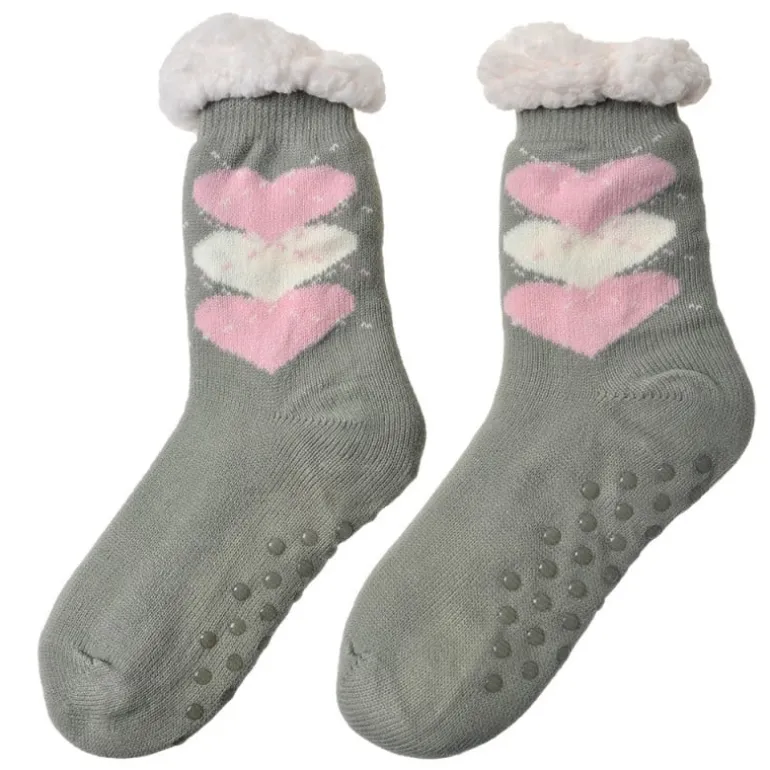 Dames Huissokken one size hartjes grijs