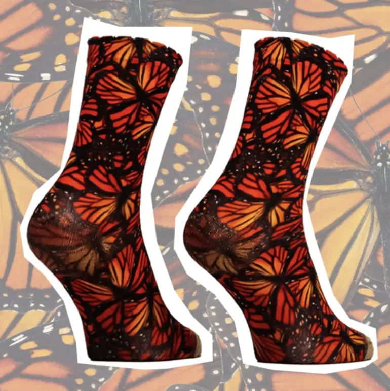 Mooie dames sokken met een printje van vlinders in herfstkleuren!