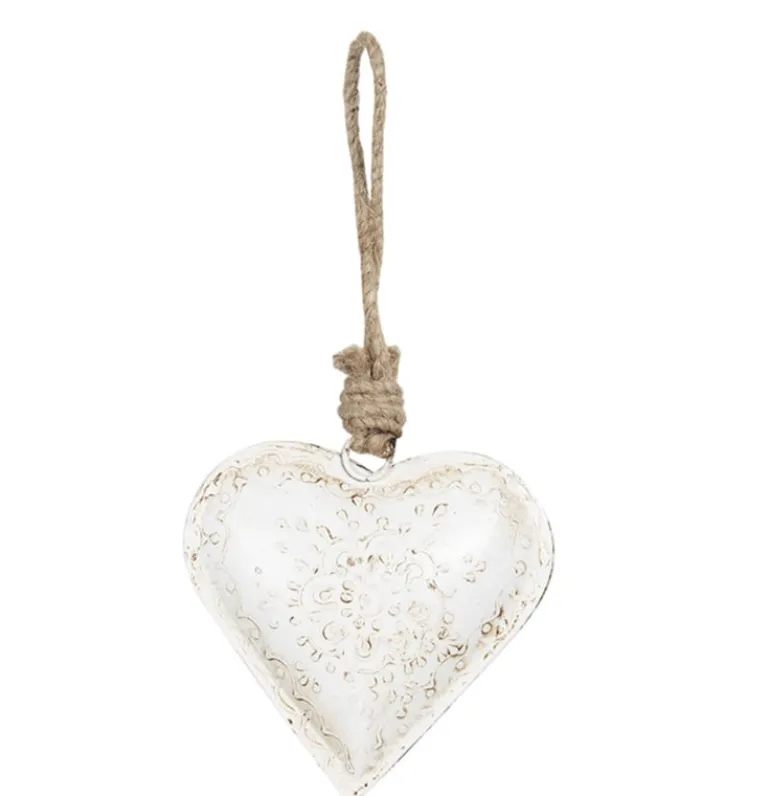 Decoratie hanger ijzeren hart wit (S) 10*2*10