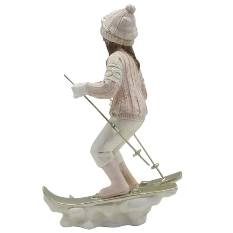 Mooie decoratie van een meisjeal skiëndin wit en zacht roze kleuren!