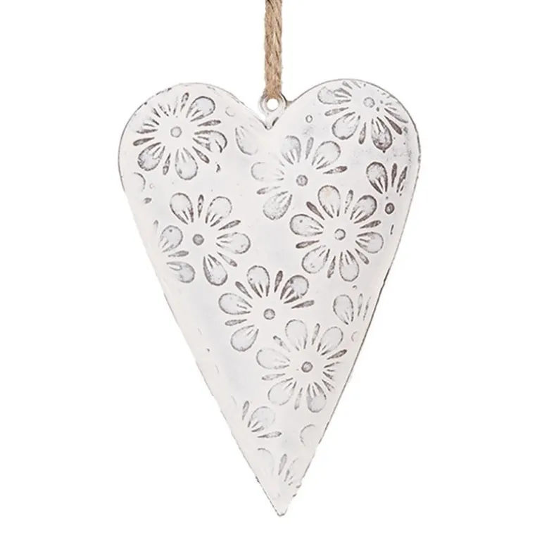 Leuke decoratievemetalen hanger in de vorm van een hartje, aan de voorkant bevinden zich bloemen. De hanger heeft een wittekleur.