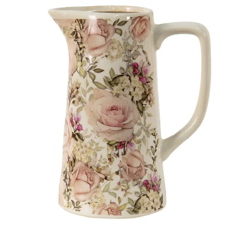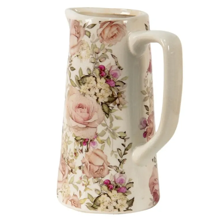 Hoe gezellig en romantischlandelijk deze decoratieve schenkkan met een prachtige rozenprint!