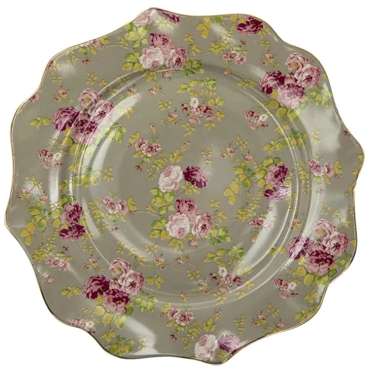 Prachtige klassiek diner bordmet een rozenprint, een mooie geschulpte randen goudkleurige accenten.