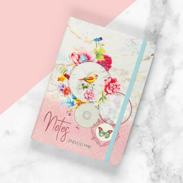 Het Endless MaeNotitieboek heeft gebroken witte gelinieerde pagina’s. Het notitieboek heeft een harde kaft. De kaft heeft een vrolijk design van bloemen, vogel en vlinder. Dit notitieboek heeft een fijnformaat waardoor je veel notities kwijt kunt per pagina en het gemakkelijk in je tas past.Dankzij de harde kaft kreuken je bladzijdes niet je blijven je notities beschermd.