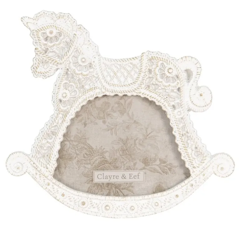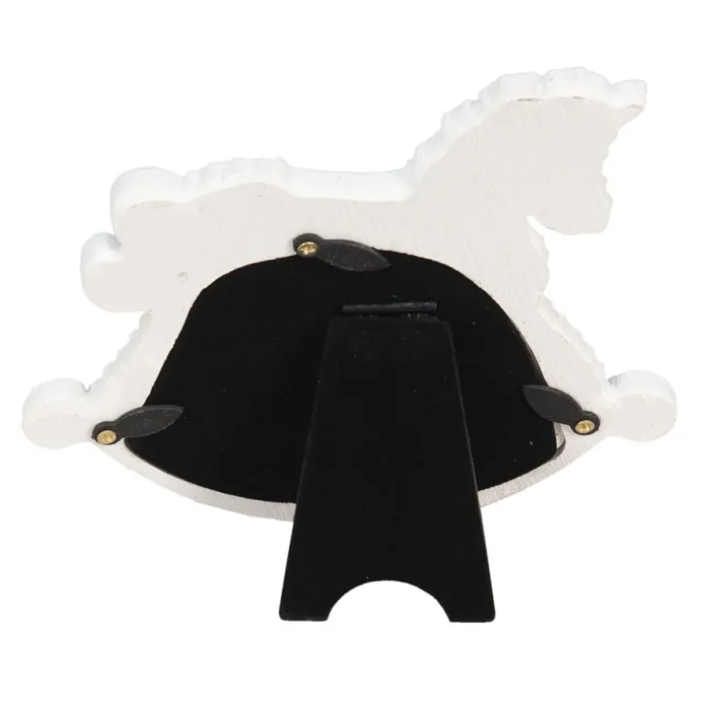 Leuke fotolijst in de vorm van een hobbelpaard in wit met een klein beetje goudkleur als afwerking!