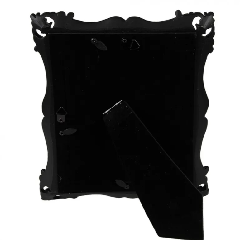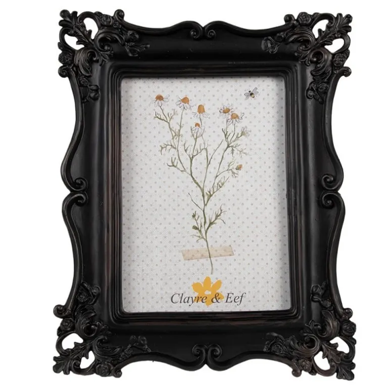 Mooie decoratieve fotolijst met bloemetjes en blaadjes motief op de rand. De kleur is mat zwart en de fotolijst kan zowel staan als worden opgehangen verticaal en horizontaal.