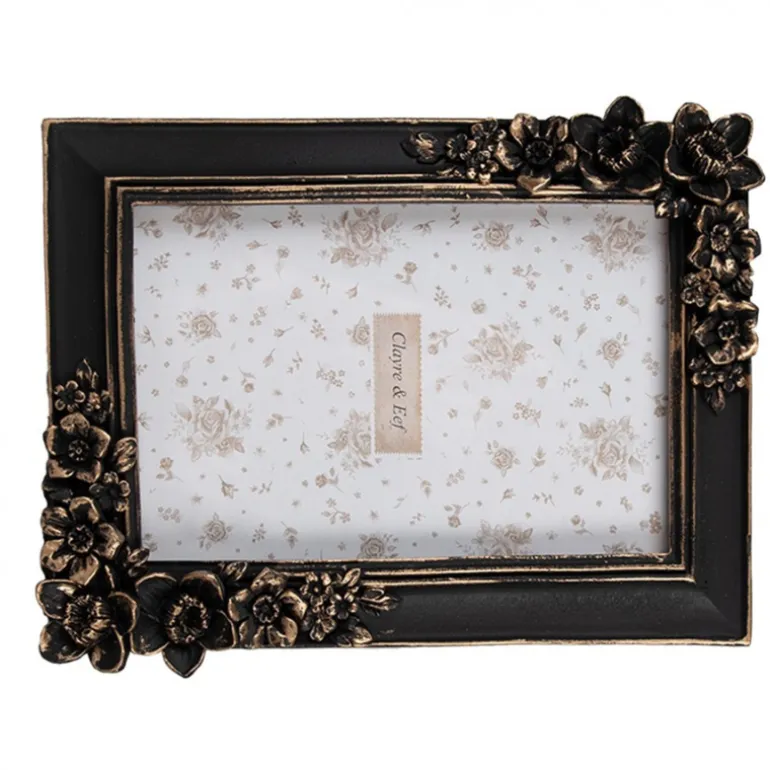 Fotolijst met bloemen zwart/goud 10*15