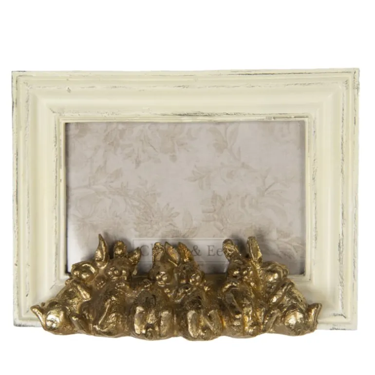 Fotolijst in cremekleur met (oud)goudkleurige konijntjes!