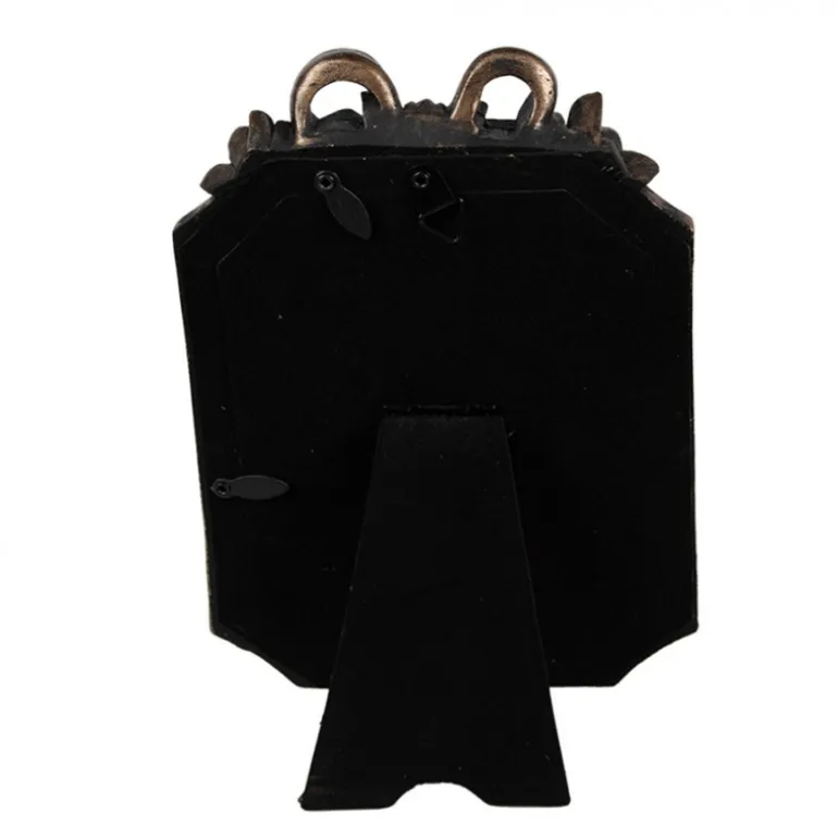 Mooie zwarte fotolijst met aan de bovenzijde een prachtige strik en daarnaast kleine roosjes. Het geheel is afgewerkt met een gouden finish.