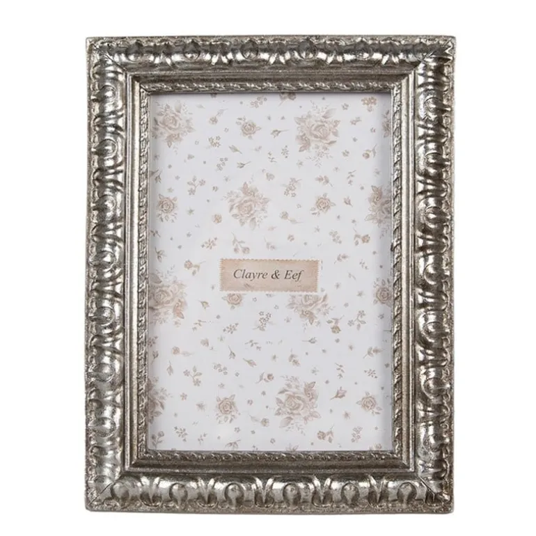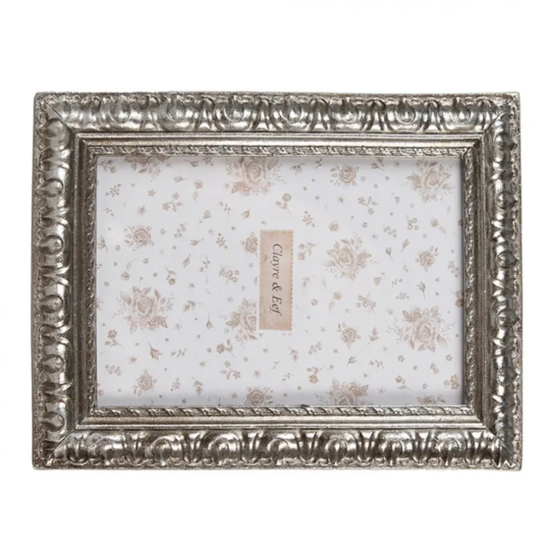 Prachtige decoratieve fotolijst in een zilverkleur met mooie motiefjesop de rand