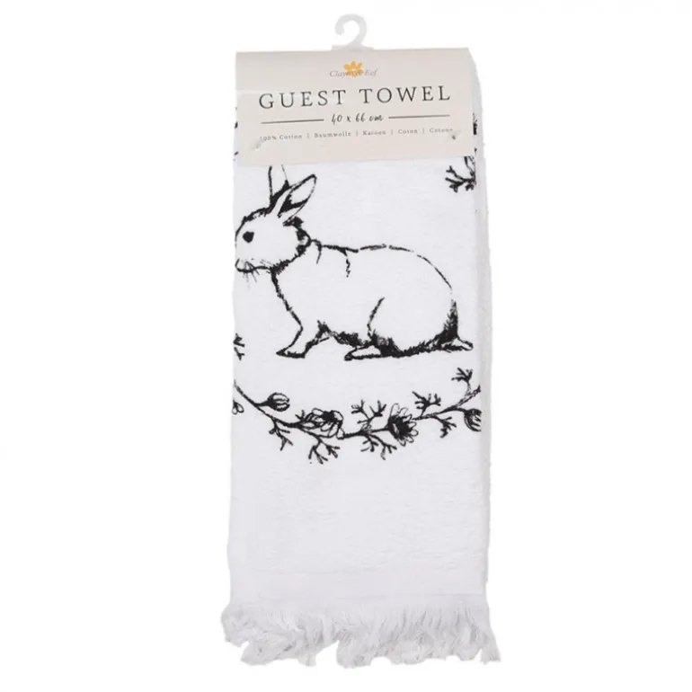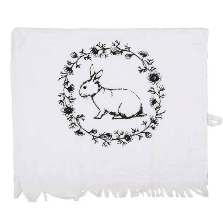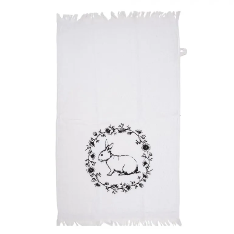 Dit wit met zwartgastendoekje zal zeker gezelligheid brengen aan je badkamer of toilet! Het gastendoekje heeft een mooi rond motiefje met daarin een konijn.