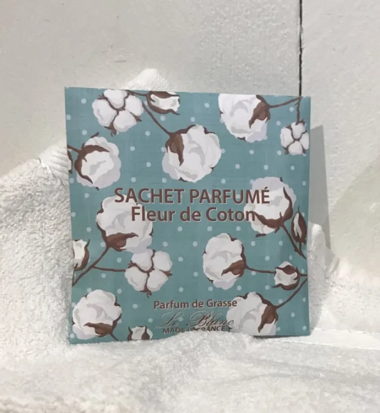 Een heerlijk vierkant geurzakje uit Frankrijk met de geur van Fleur de Cotonen een mooie nostalgische afbeelding.